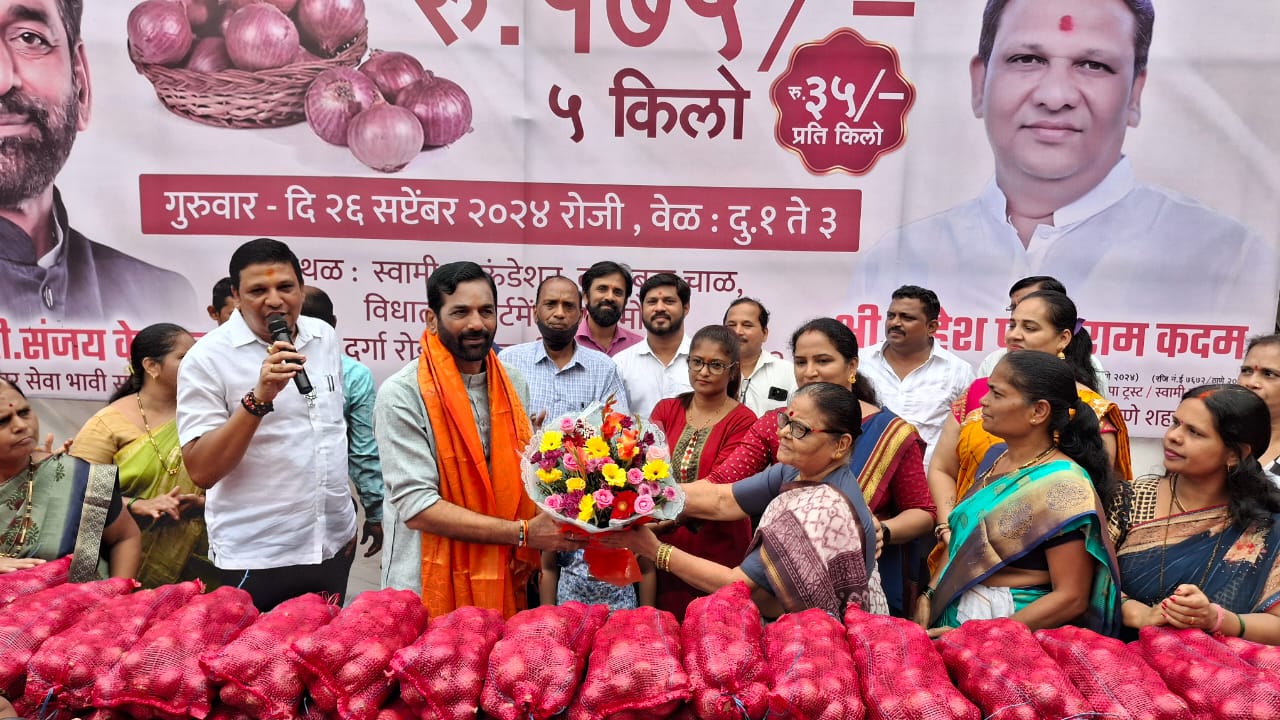 कांद्याचे उत्पादन कमी झाल्याने तसेच पावसामुळे कांद्याची आवक कमी झाली आहे. त्यामुळे किरकोळ बाजारातही निकृष्ट दर्जाचा कांदा ६० ते ८० रुपये किलोने विकला जात आहे. कांद्याचे दर चढू लागल्याने महिलांच्या डोळ्यात पाणी येऊ लागले आहे, मात्र नाईलाजाने त्यांना हे कांदे खरेदी करावे लागत आहेत. या पार्श्वभूमीवर आमदार संजय केळकर पुन्हा एकदा ठाणेकरांसाठी धाऊन आले आहेत. ते अध्यक्ष असलेल्या संस्कार संस्थेच्या माध्यमातून आणि केंद्र सरकारच्या एनसीसीएफ या राष्ट्रीय ग्राहक फोरमच्या सहकार्याने ठाण्यात उत्तम दर्जाचा कांदा अवघ्या ३५ रुपये किलोने उपलब्ध करून देण्यात आला आहे. प्रत्येकी पाच किलो कांदे फक्त १७५ रुपये किलोने देण्यात येत आहे.