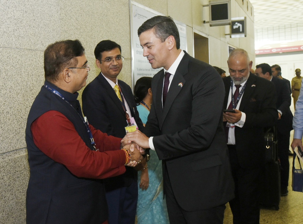 पॅराग्वे प्रजासत्ताकचे अध्यक्ष सँटियागो पेना यांचे त्यांच्या शिष्टमंडळासमवेत छत्रपती शिवाजी महाराज आंतरराष्ट्रीय विमानतळ येथून विशेष विमानाने प्रयाण झाले.