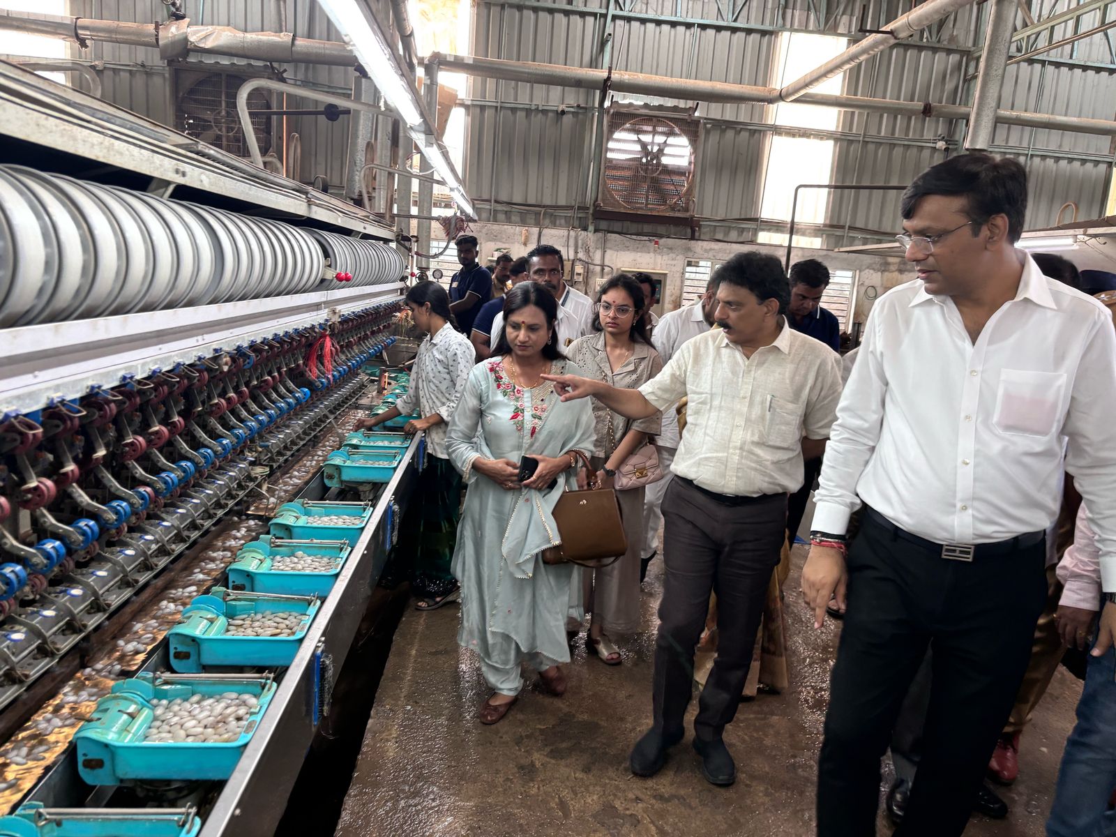 सांगली : तासगाव तालुक्यातील कवठेएकंद येथील रेशीम धागा निर्मिती केंद्र येथे वस्त्रोद्योग मंत्री मा.ना.संजय सावकारे यांनी आज भेट देऊन पाहणी केली.